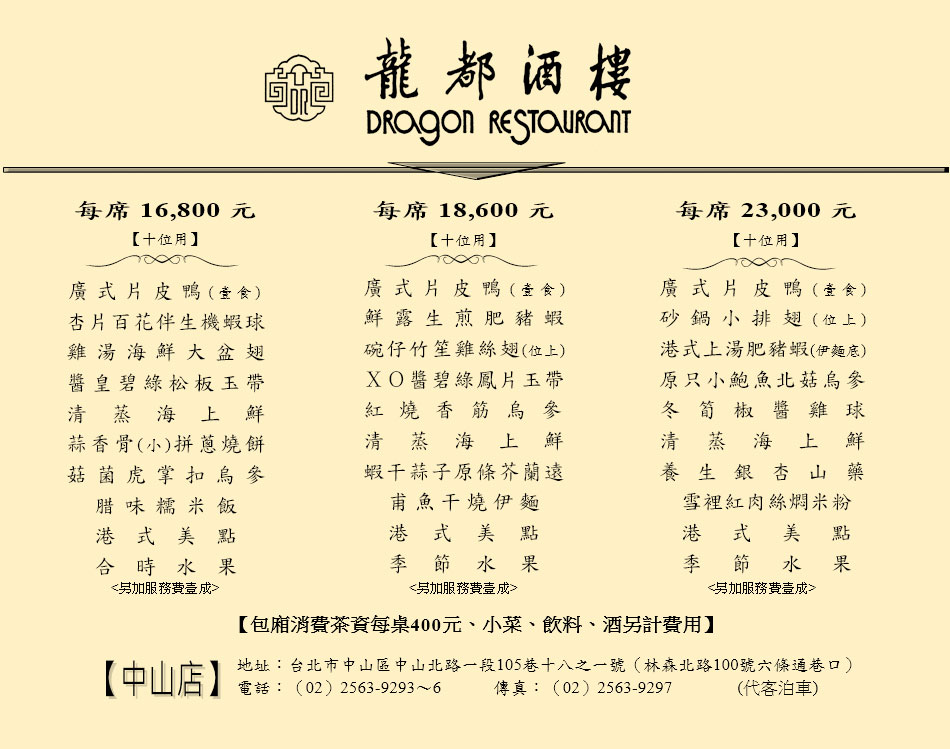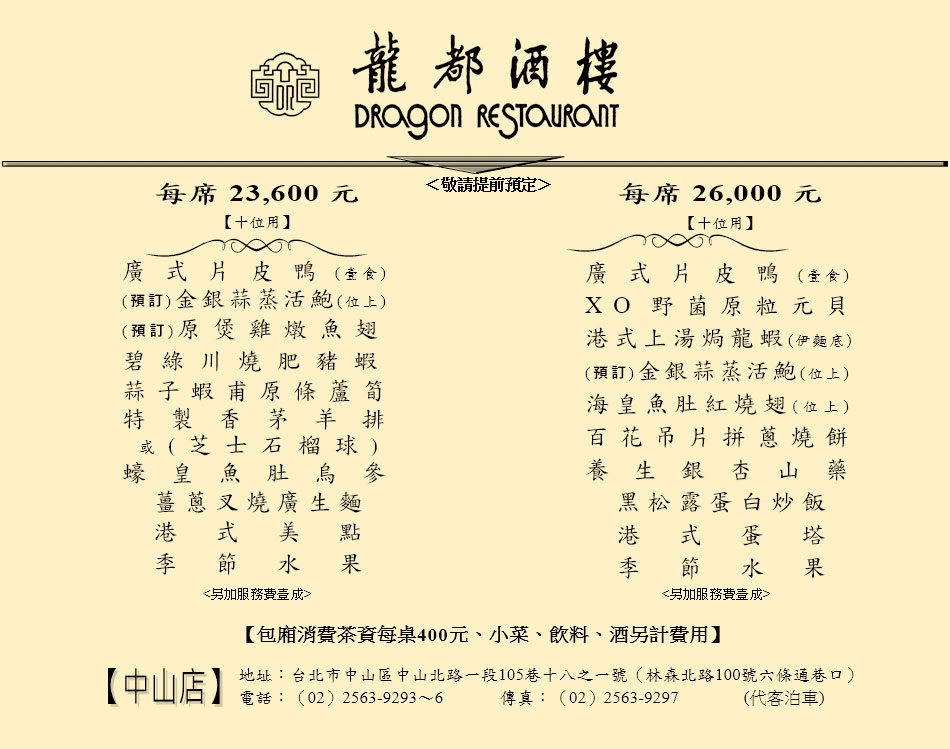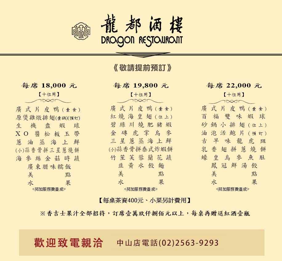 大堂貴賓席-菜單